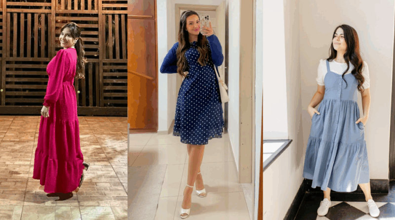 • Sobreposição criativa: vestidos sem mangas ou decotados podem ser adaptados com camadas e peças discretas.